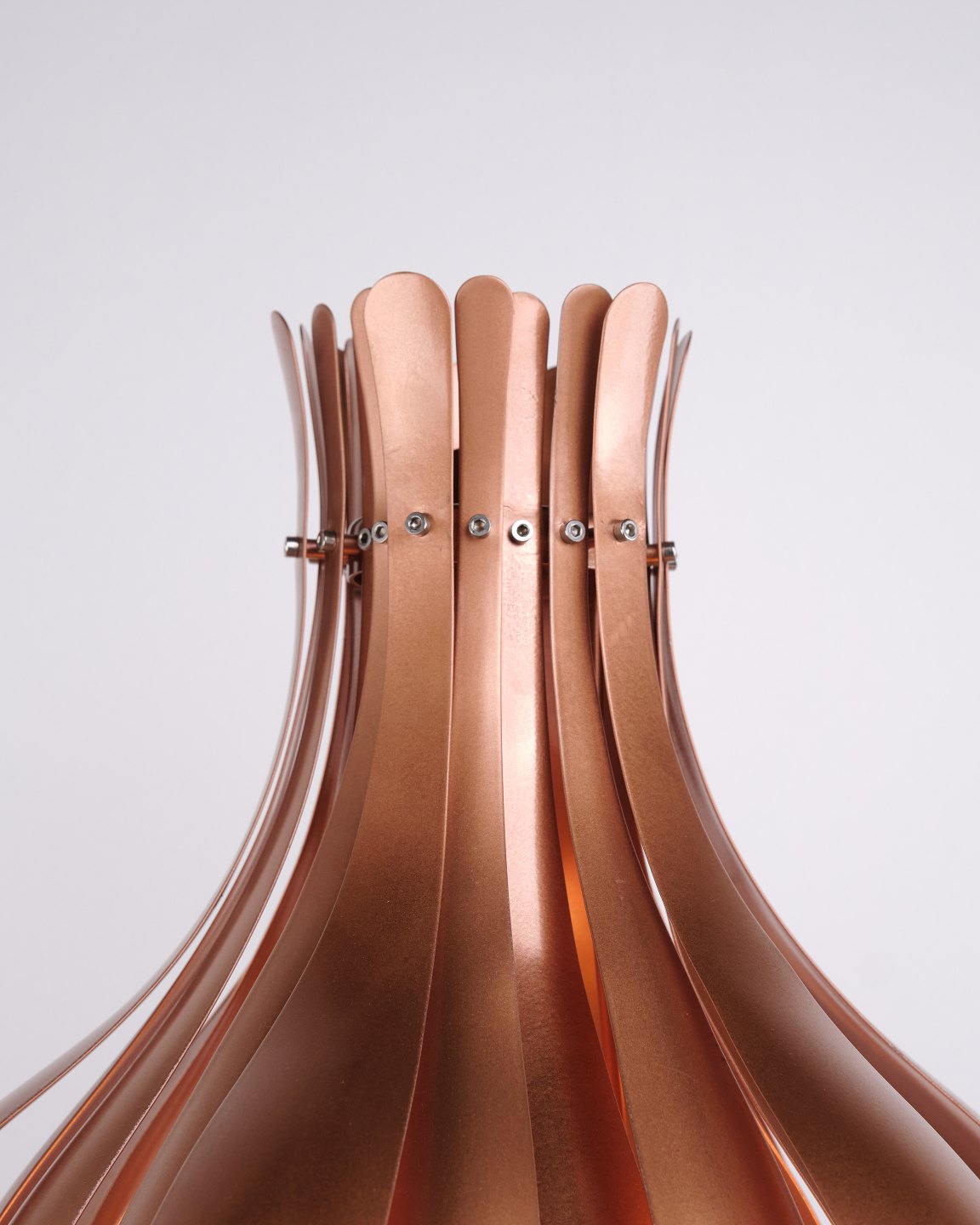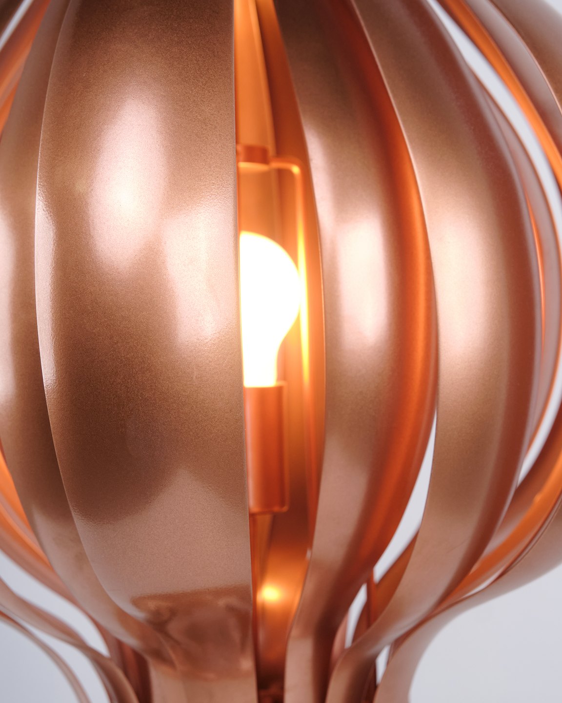 Rare lampe de table Onion conçue par Verner Panton dans les années 1970. La lampe est réalisée en cuivre et se caractérise par sa forme organique et superposée, créant une expression sculpturale et décorative. La structure offre une lumière douce et chaleureuse, où les reflets du cuivre soulignent le caractère de la lampe.