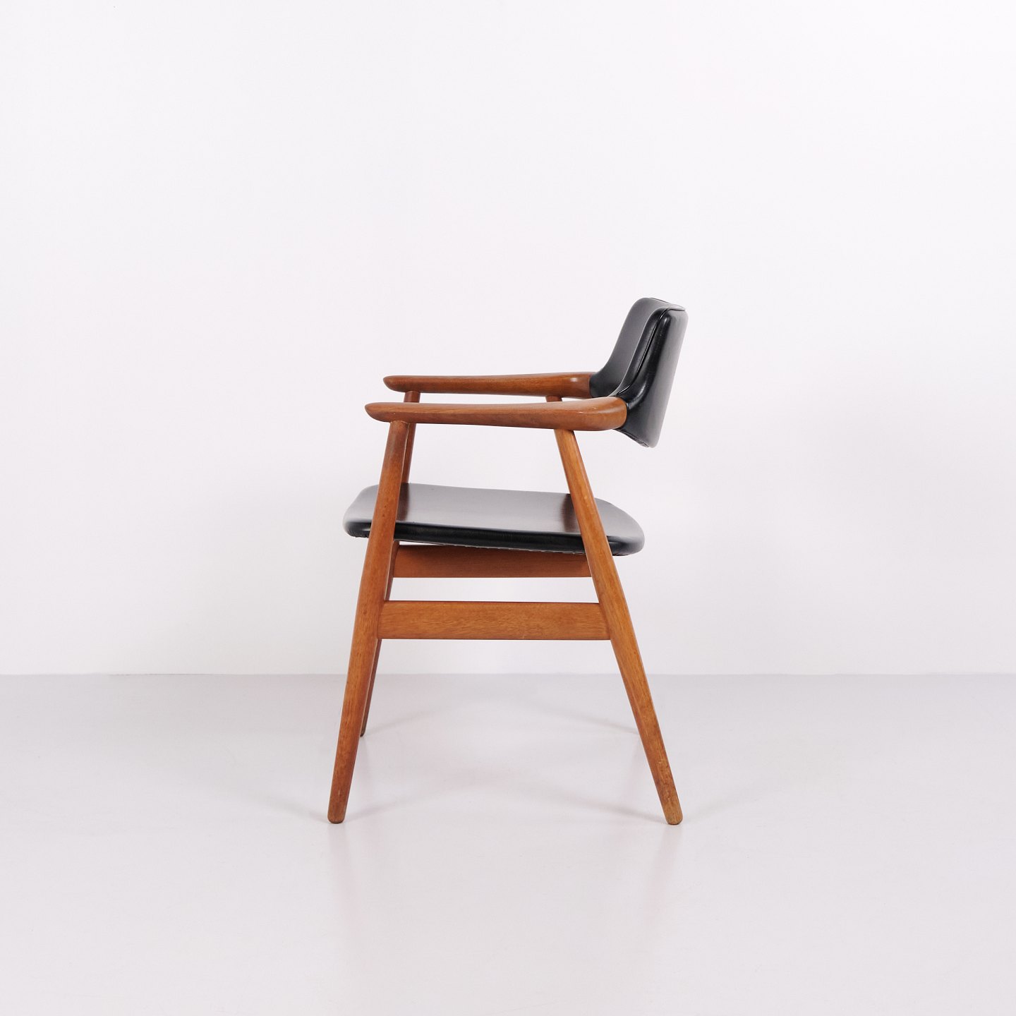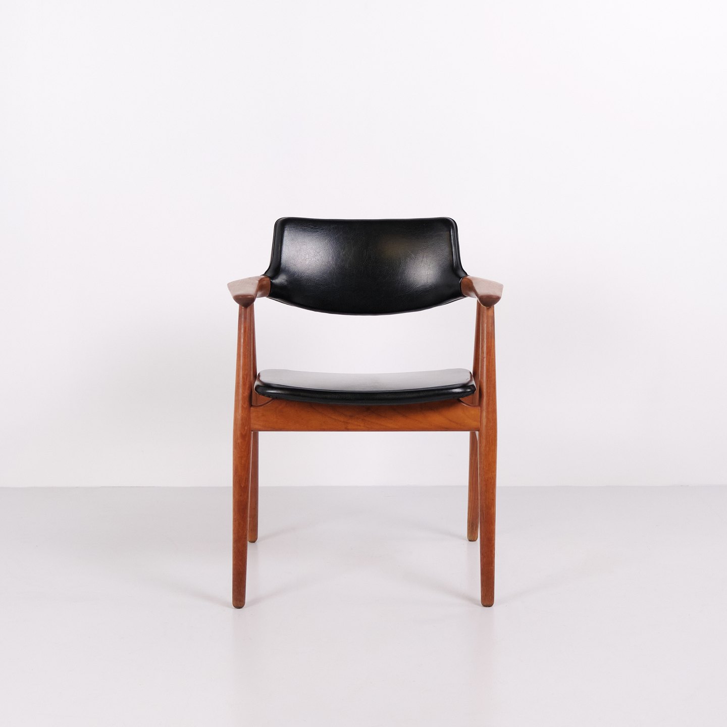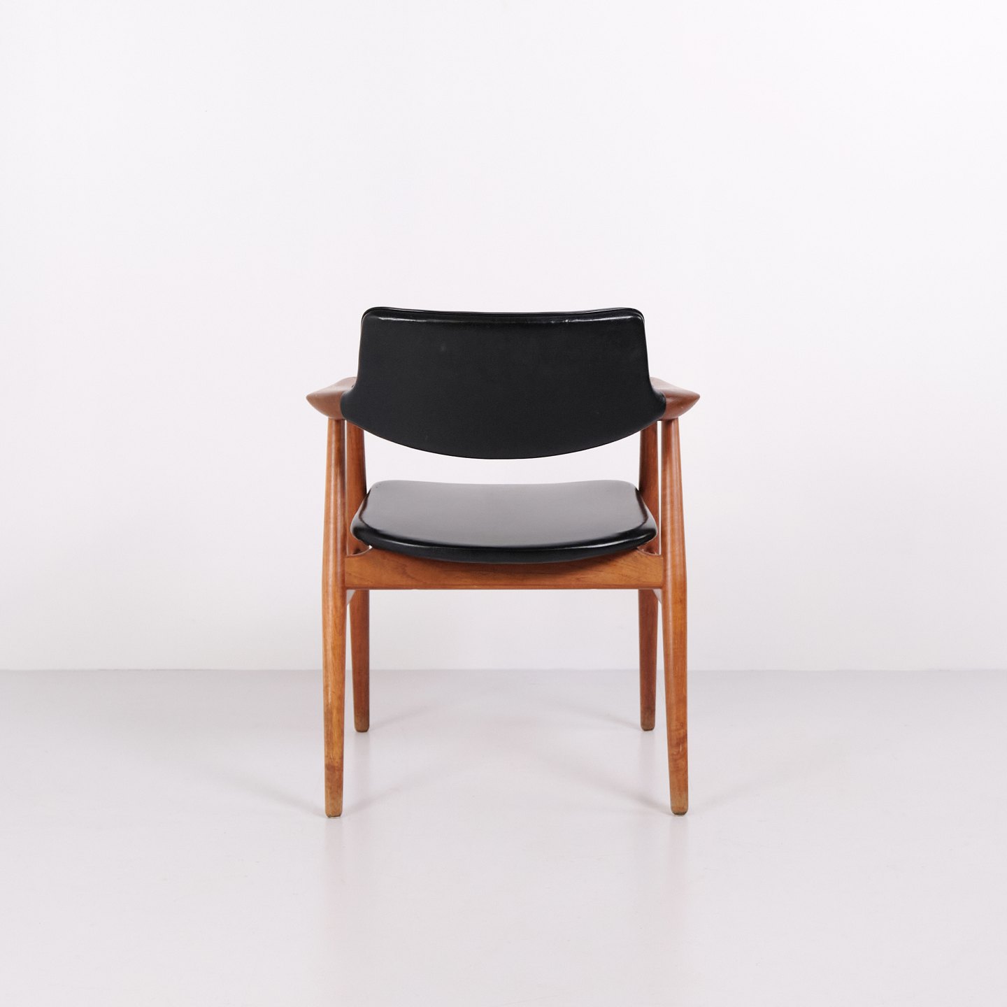 Suite de 6 chaises de salle à manger GM11 dessinées par Svend Aage Eriksen pour Glostrup Møbelfabrik dans les années 1960. Réalisées en teck massif avec assises et dossiers en cuir noir. Le modèle GM11 est reconnu pour ses lignes organiques, ses accoudoirs légèrement courbés et son grand confort. Un classique du design danois du milieu du siècle avec un bel artisanat et des proportions élégantes. Vendues uniquement en ensemble complet.