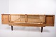 — Matériau : Teck plaqué, teck massif, cannage, simili cuir noir et laiton