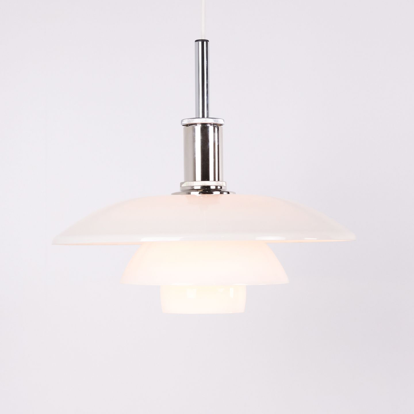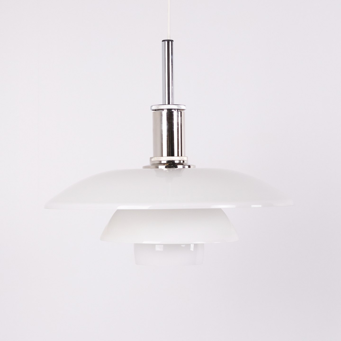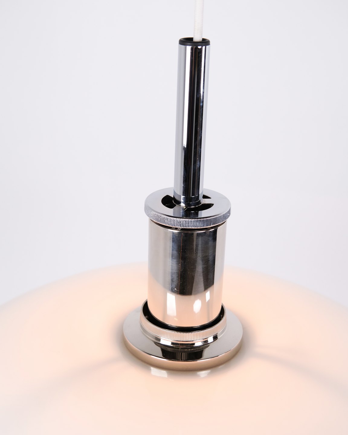 Suspension PH 4½-4 en Verre Opalin Blanc et Chrome, Poul Henningsen pour Louis Poulsen