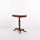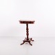 Table d’appoint ancienne en acajou avec plateau rectangulaire mouluré, pied colonne tourné et quatre pieds galbés. La table présente des proportions classiques et des détails typiques des tables de salon et d’appoint européennes du XIXe siècle. Convient comme table de lampe, console ou petite table d’entrée. L’acajou était un matériau privilégié à cette époque pour sa solidité, sa chaleur visuelle et son beau veinage.
