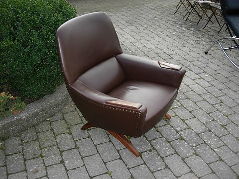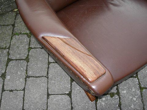 SoldChair in brown leather with brazilian rosen wood on armrest designed by Illum Wikelsø