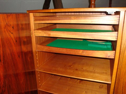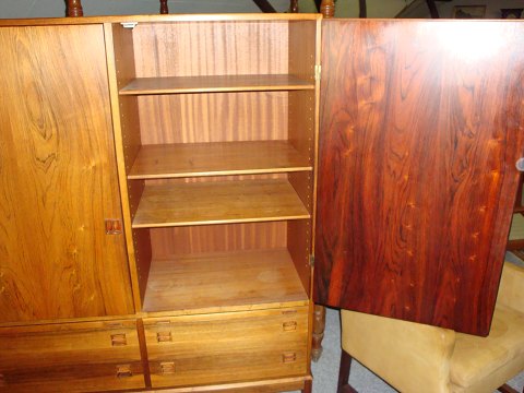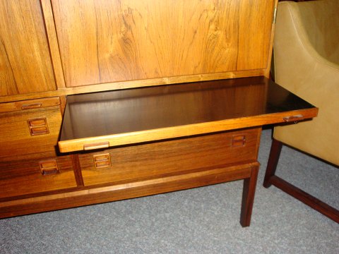 Soldcupboard in brazilian rosenwood with extension plate in black laminat danish design in very good conditon
