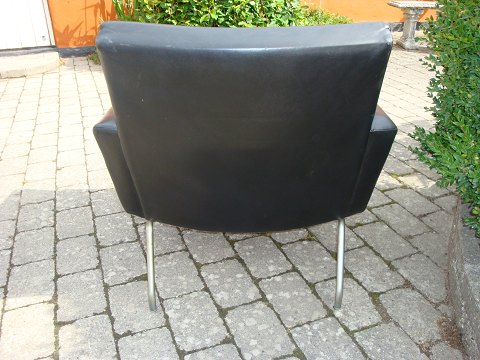 Armchair 2 pieces in black leather Danish design by Henry Rolschau from 1950 are 5000 m2 showroom