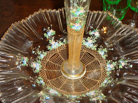 SoldGlass centerpiece from Funens glassworks from around 1860 with fine Flowers.